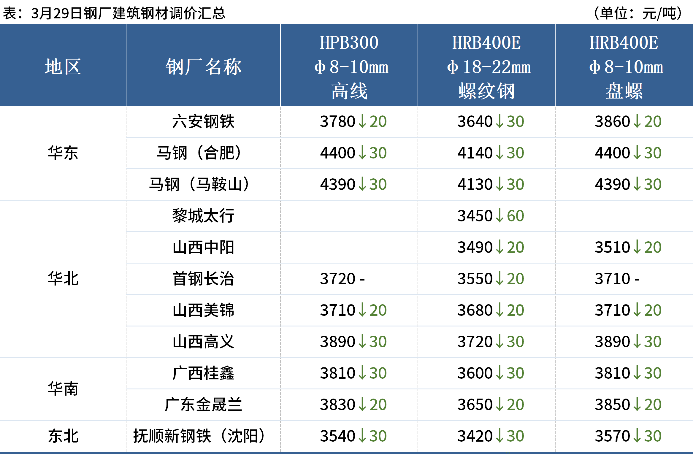 ◎沙钢自2024年3月30日起废钢价格下调50元/吨,具体废钢价格以2024-F9价格为准。