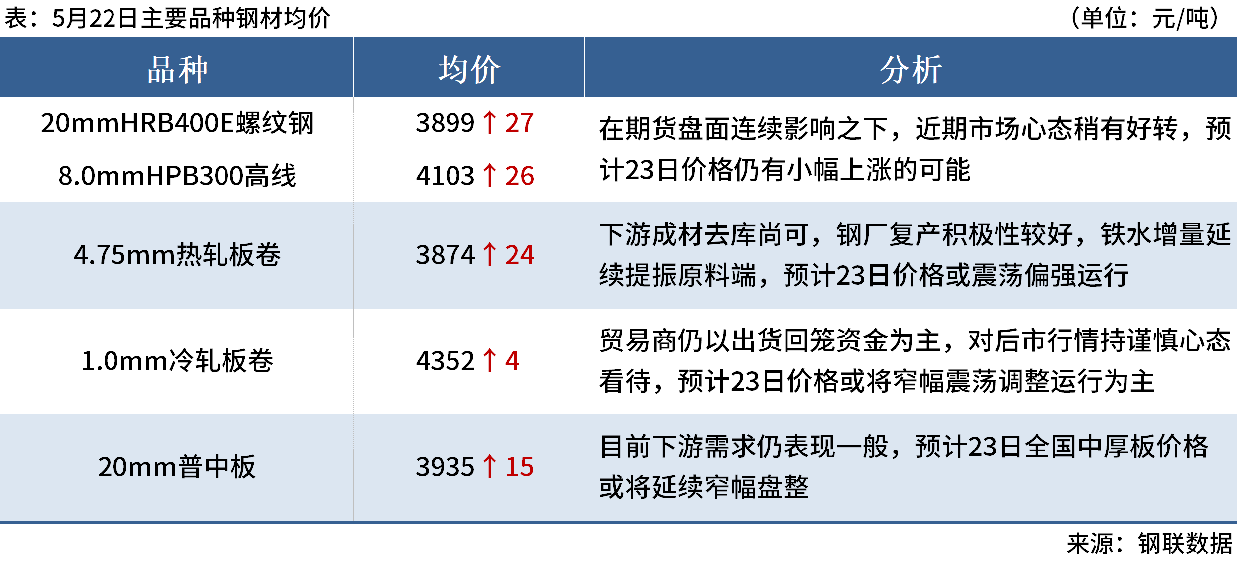 ◎5月22日,全国主港铁矿石成交104.70万吨,环比增14.7%;237家主流贸易商建筑钢材成交16.18万吨,环比增20.7%。