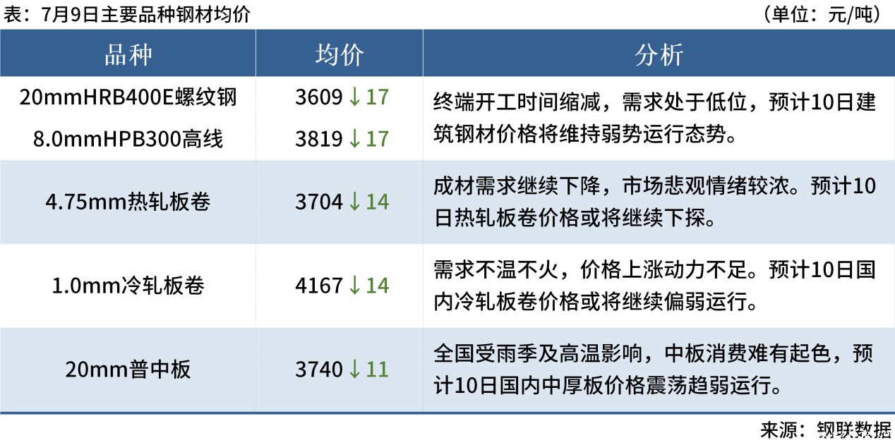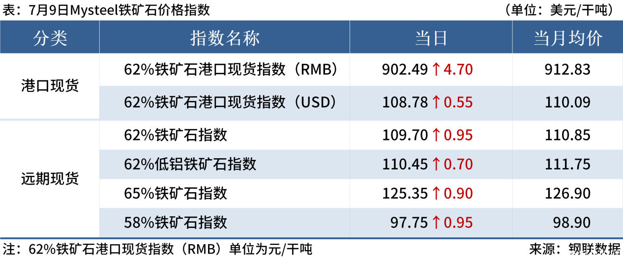 ◎ 7月9日,全国主港铁矿石成交87.90万吨,环比减21.3%;237家主流贸易商建筑钢材成交12.73万吨,环比增22.5%。