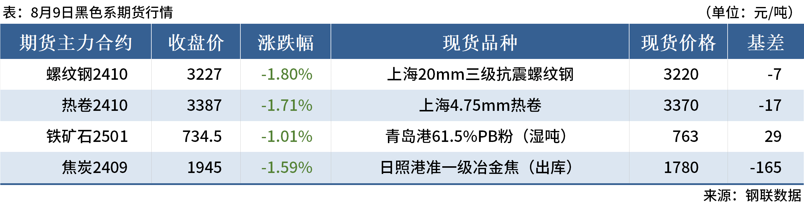 ◎8月9日,全国主港铁矿石成交82.80万吨,环比减20.1%;237家主流贸易商建筑钢材成交10.93万吨,环比增24%。