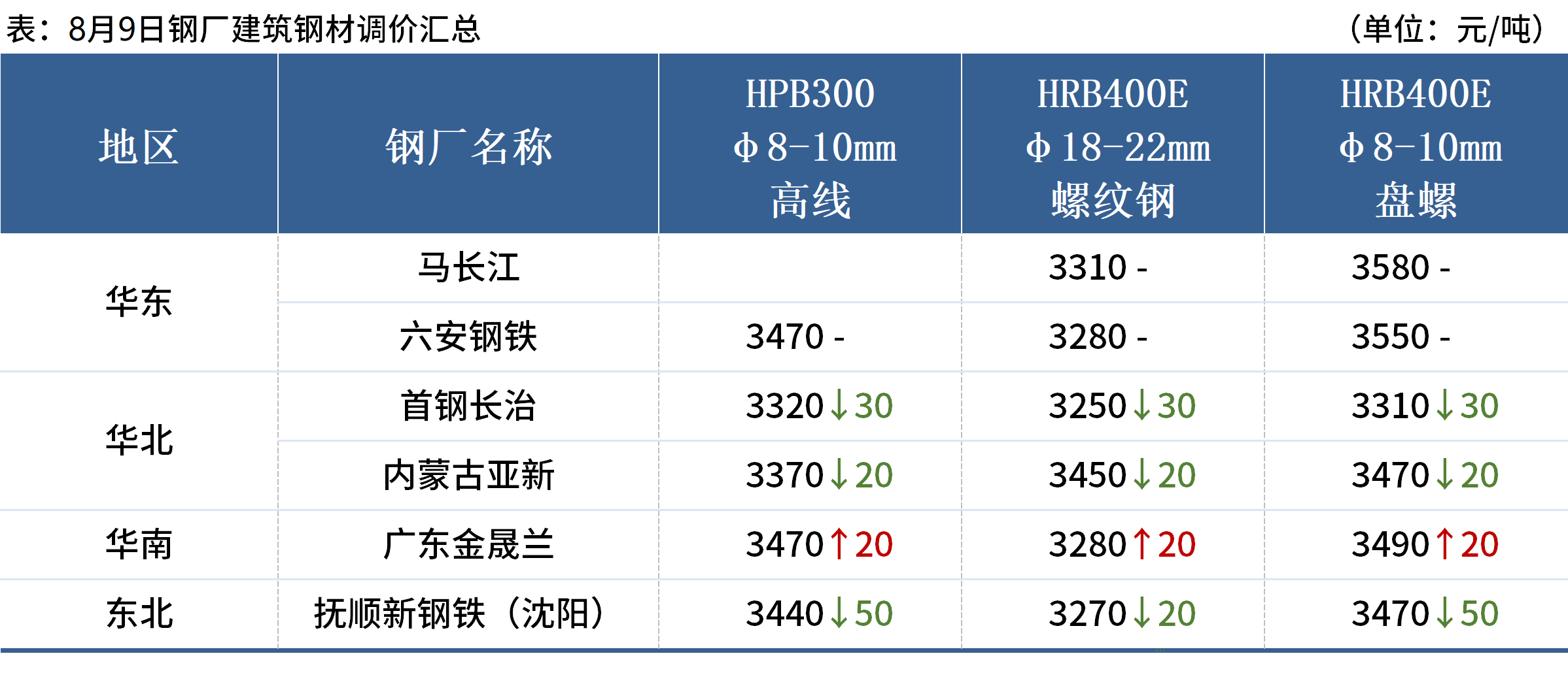 ◎8月10日,中天钢铁出台8月中旬出厂价,螺纹平、线材盘螺平,现华东螺纹3350元/吨、线材盘螺3700元/吨。