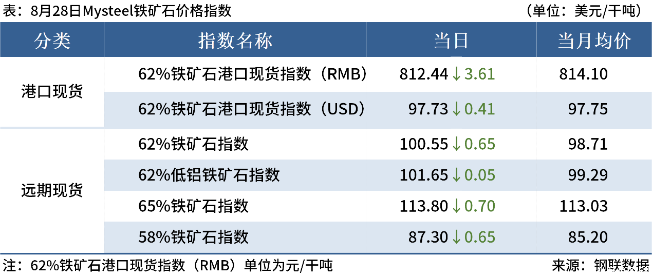 ◎8月28日,全国主港铁矿石成交104.70万吨,环比减9.2%;237家主流贸易商建筑钢材成交11.27万吨,环比减14.1%。