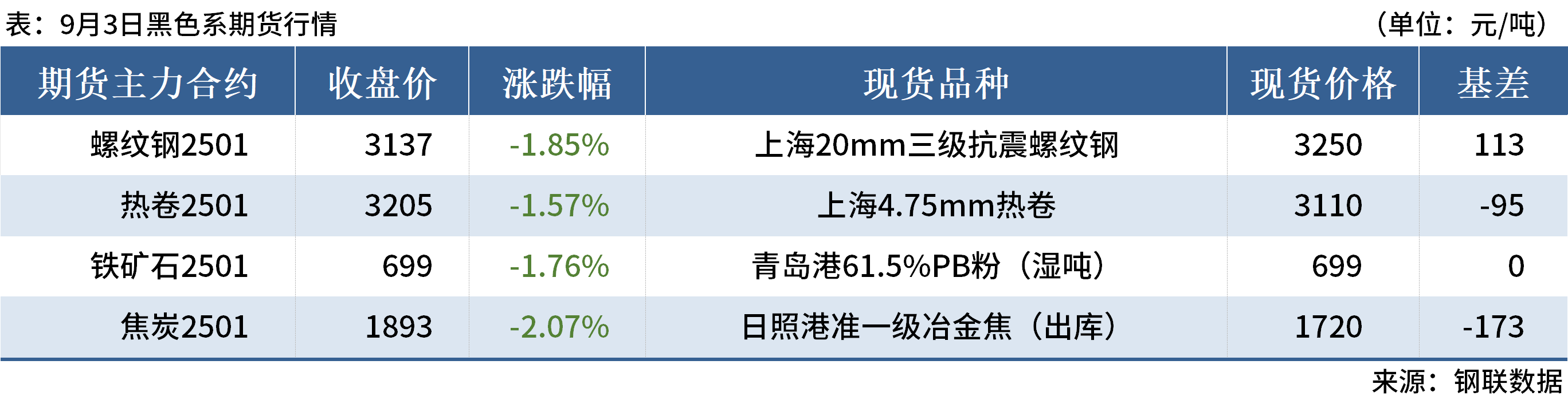 ◎9月3日,唐山钢坯出厂价格下调40元/吨,现迁安主流钢厂普方坯出厂报2870元/吨;迁安松汀钢铁普方坯出厂报2880元/吨。