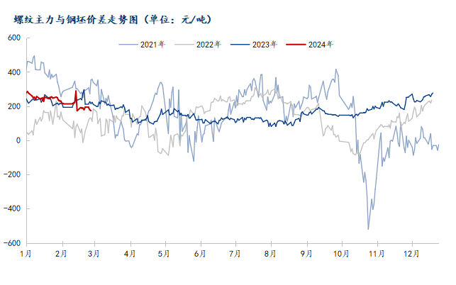 1日RB2405收盘3763元/吨下调32元/吨,现RB2405-坯现货价差173元/吨,较上一交易日下调5元/吨。