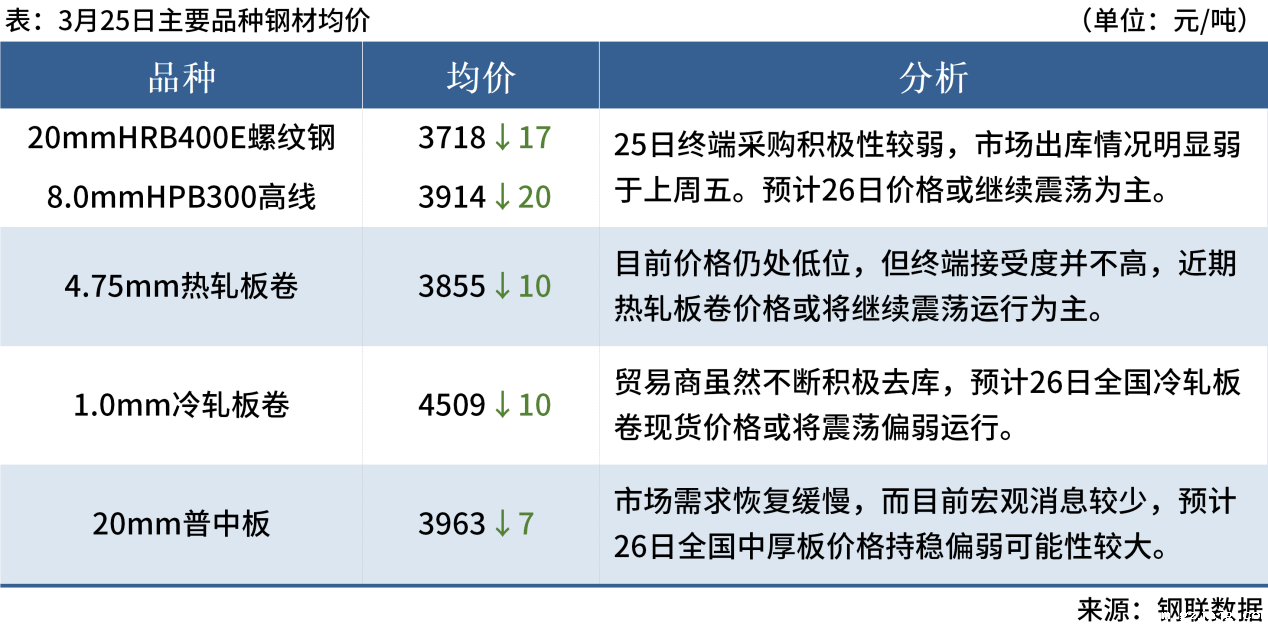 ◎ 3月25日,全国主港铁矿石成交95.20万吨,环比增26.9%;237家主流贸易商建筑钢材成交13.64万吨,环比减1%。