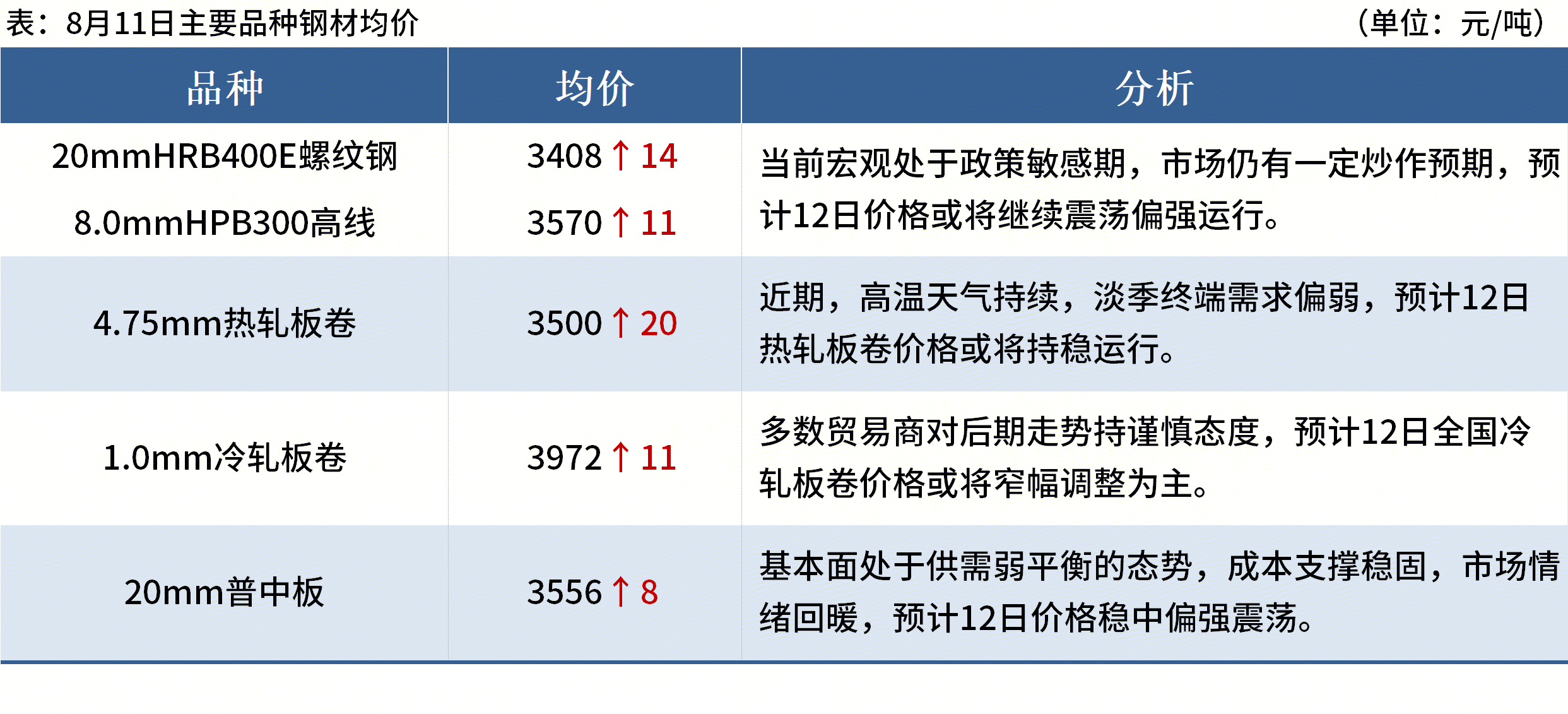 ◎8月11日,宝钢9月冷热轧调价,厚板、热轧基价上涨200元/吨;酸洗、普冷基价上涨300元/吨详情>>